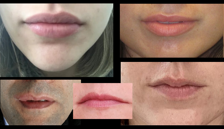 of light on the rim of the upper lip shows its asymmetric shape, despite variations in the color